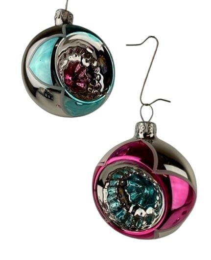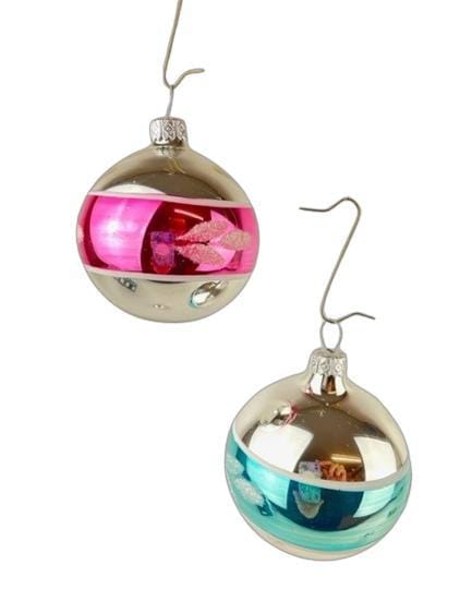 Set van 8 Retro Kerstballen Ø 6cm Aqua-Zilver-Roze met Piek