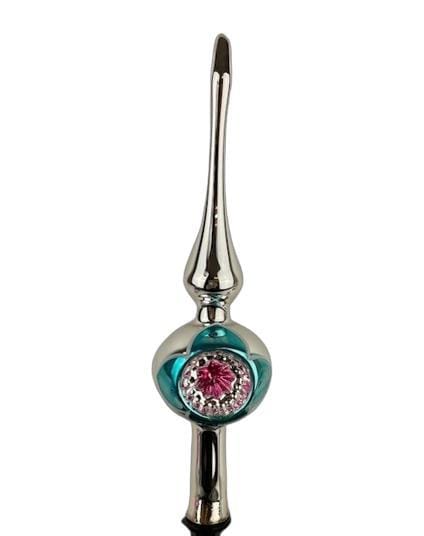 - Set van 8 Retro Kerstballen Ø 6cm Aqua-Zilver-Roze met Piek
