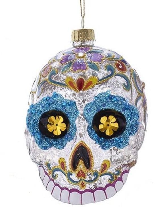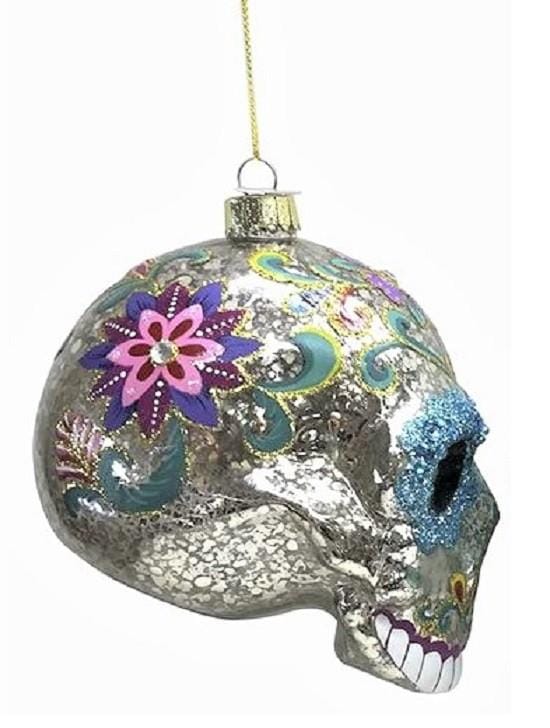 Er zijn vele soorten Sugarskulls als kerstbal verkrijgbaar, maar deze Luxe variant is denk ik één van de mooiste. De bloemen zijn in meerdere kleuren beschilderd waarbij de contouren ook nog met dunne lijnen goudglitter zijn afgewerkt. In het hart van de bloem zitten kleine steentjes en ook de oogkassen zijn bedekt met glitterstenen.
