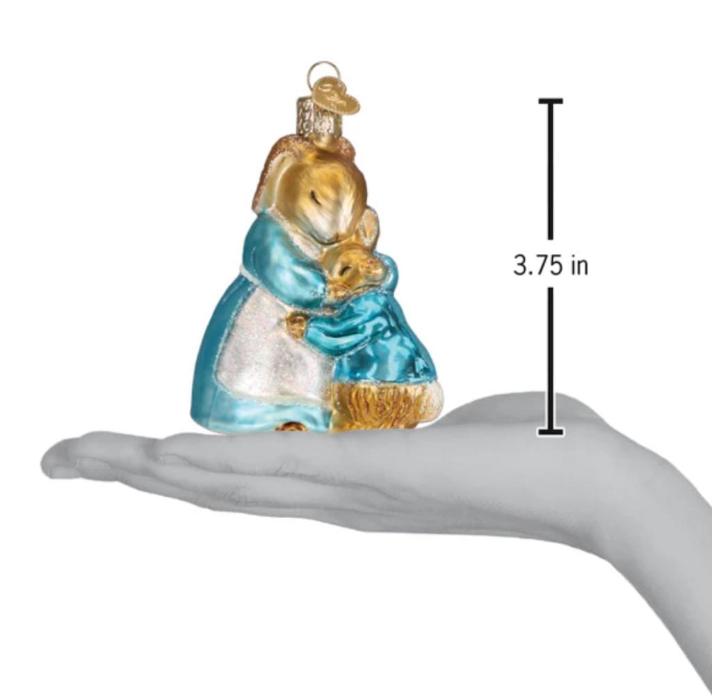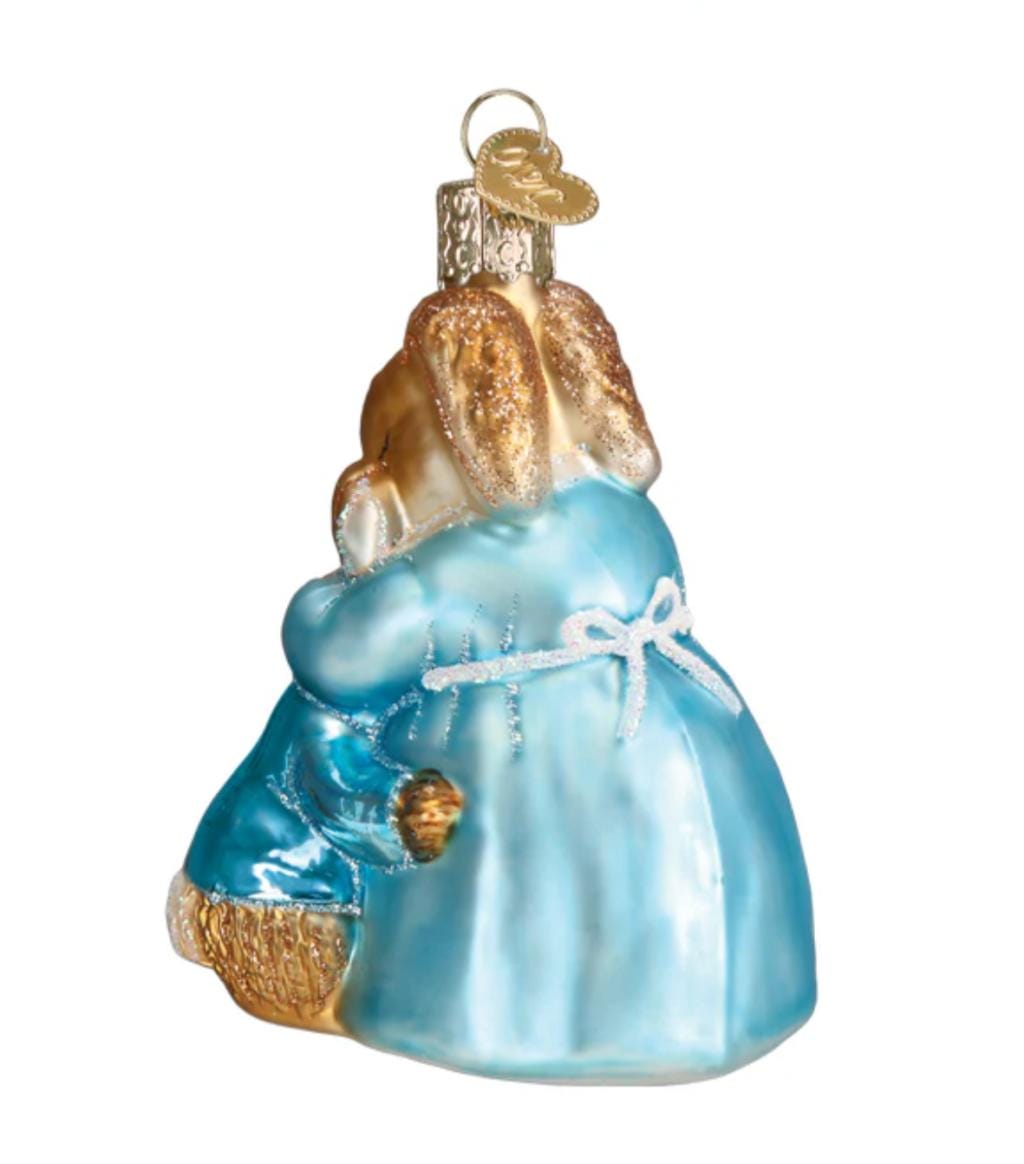 Wie kent niet de gezellige verhalen over Peter Rabbit en zijn moeder? Met deze kerstbal haal je een stukje nostalgie in huis. Stel je voor: Mrs. Rabbit die een oogje in het zeil houdt terwijl Peter een avontuur beleefd. Een schattiger gezicht bestaat er bijna niet! Deze handbeschilderde kerstbal is een echte aanwinst voor elke verzameling.