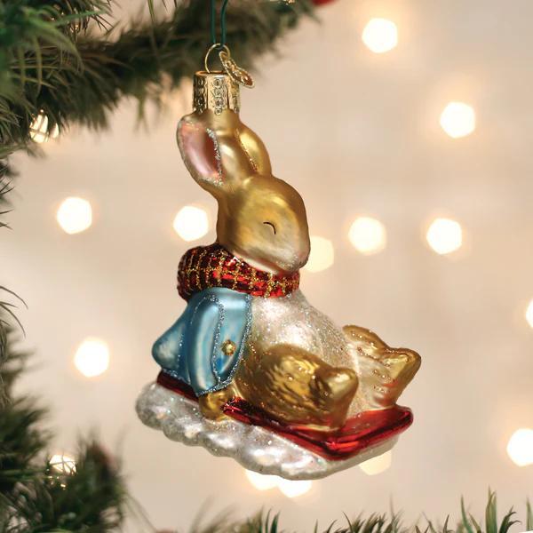 Kerstbal Peter Rabbit op Slee – Handgemaakt Glazen Ornament van Old World Christmas
