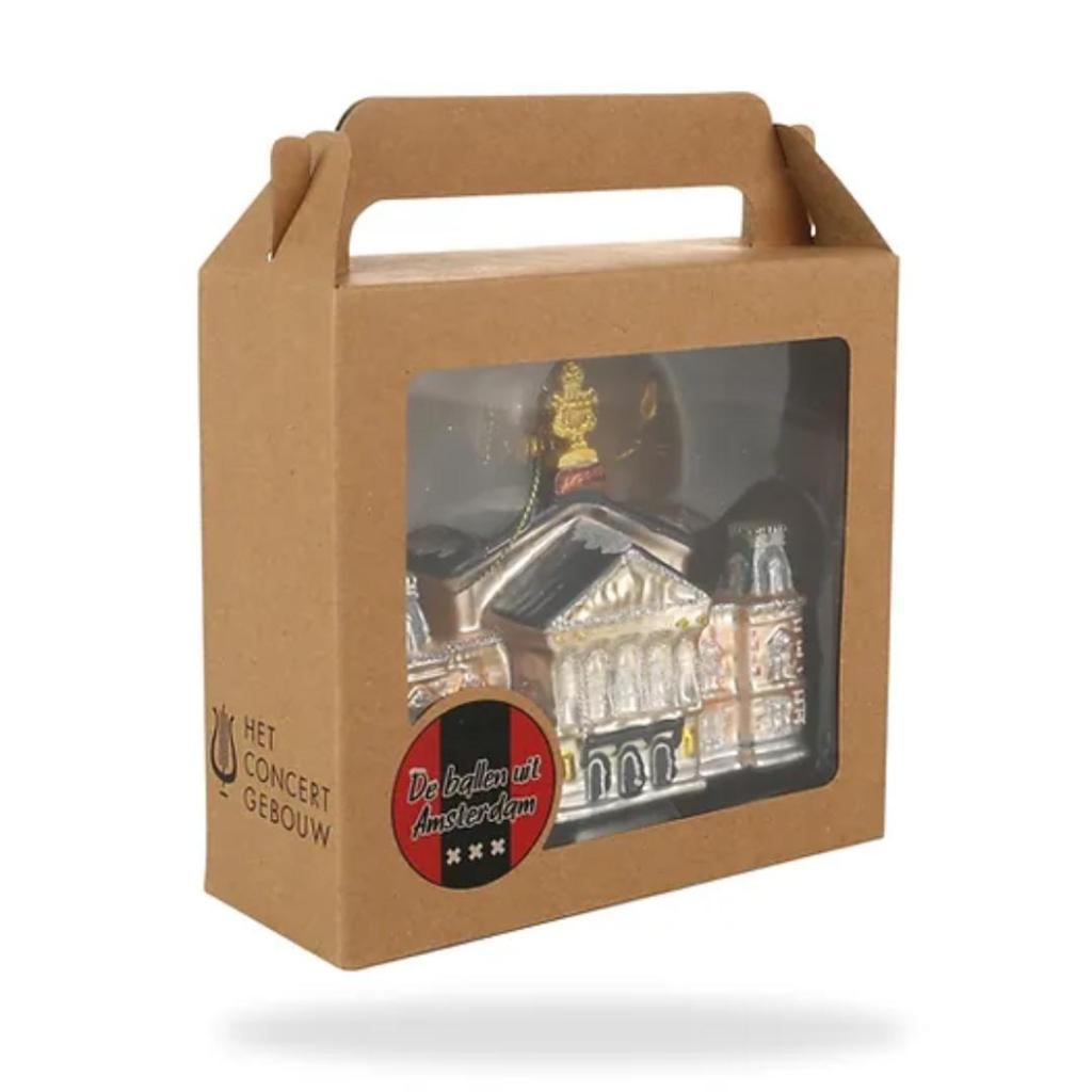 Breng een ode aan het muzikale hart van Amsterdam met de Kerstbal Concertgebouw. Dit luxe ornament, gemaakt van glas, is verfijnd afgewerkt met glanzende koper-, goud- en zilverkleurige accenten. De karakteristieke gevel van het Concertgebouw straalt elegantie en traditie uit, ideaal voor in je kerstboom of als geschenk voor muziekliefhebbers.