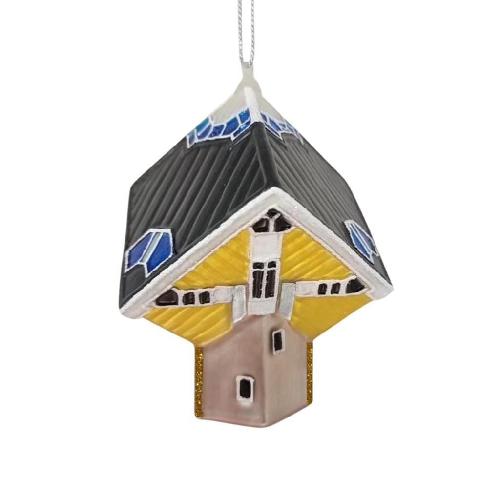 Breng een stukje iconische architectuur in je kerstboom met de Kerstbal Kubuswoning. Dit unieke ornament is geïnspireerd op de beroemde kubuswoningen en is met de hand gemaakt en beschilderd. Een echte eyecatcher voor liefhebbers van design, architectuur of gewoon bijzondere kerstdecoratie. Perfect om jouw boom nét dat beetje extra karakter te geven.