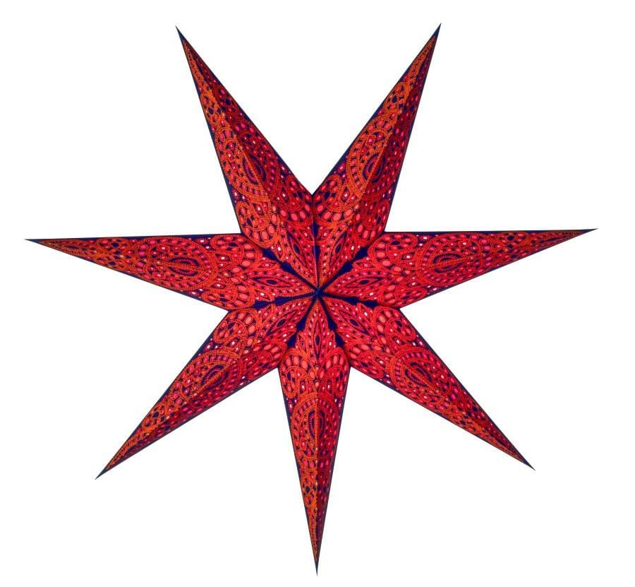 Onze nieuwe favoriet met zijn prachtige Rood, Oranje, Roze en Zwarte kleuren. Hij is gemaakt van gezeefdrukt papier in India. Niet alleen mooi tijdens de kerstperiode, maar gedurende het hele jaar is het een sieraad voor in de kamer. Lampjes en Snoeren worden niet standaard meegeleverd, maar kunnen besteld worden bij de Kerststerren asseccoires.