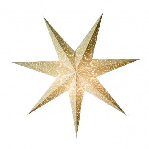 Tijdens donkere dagen straalt het licht van de 7 puntige witte Kerstster Kashmir je tegemoet. Het licht schijnt fijntjes door de kleine geponste gaatjes. De Starlightz Ster is met de hand gemaakt in India. Door de sterren uit te vouwen en een klein beetje naar elkaar toe te duwen waardoor er ruimte in de punten ontstaat, kan je de ster snel en eenvoudig om een lamp heen vouwen.