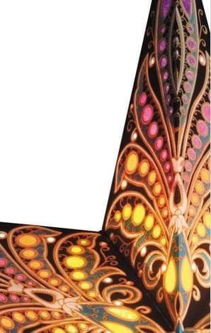 De enige brandveilige ster met TUV veiligheidskeuring waar 60 Watt licht in kan voor een warme persoonlijke uitstraling. De Starlightz zijn een Zijderoute product, met de hand gemaakt in India.