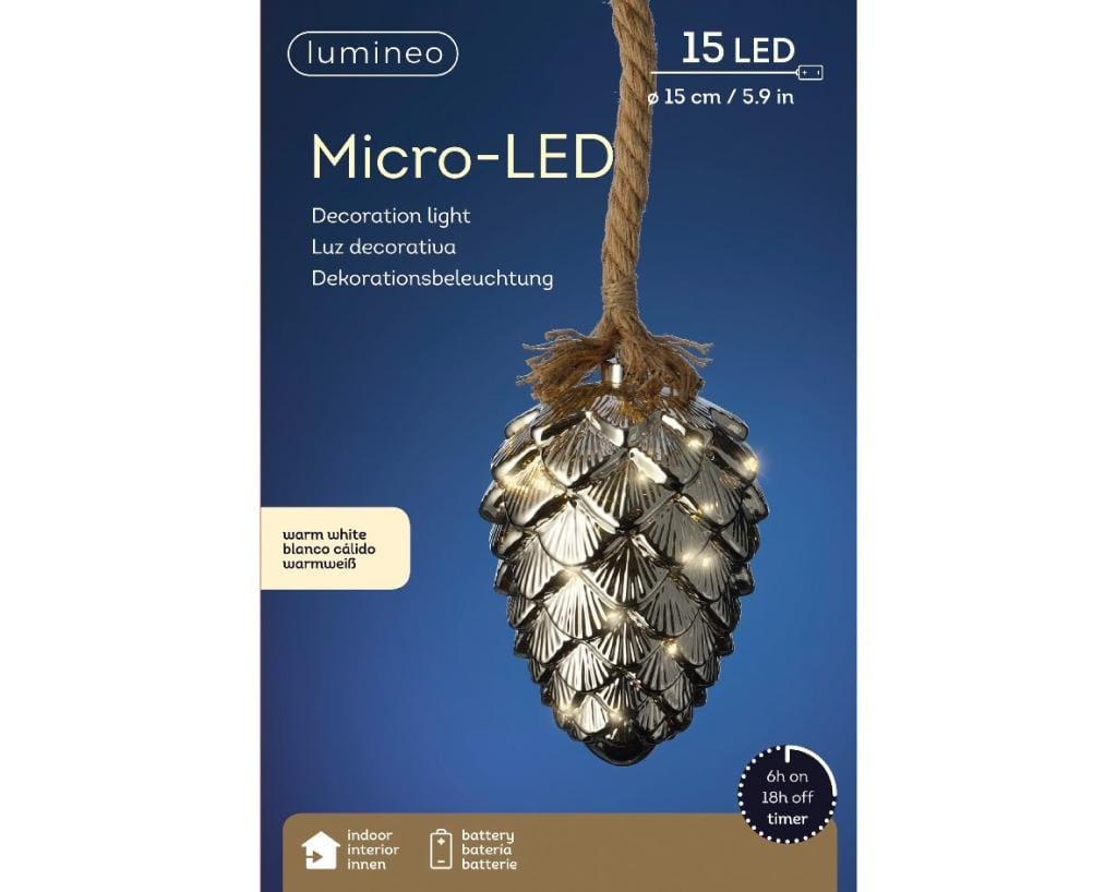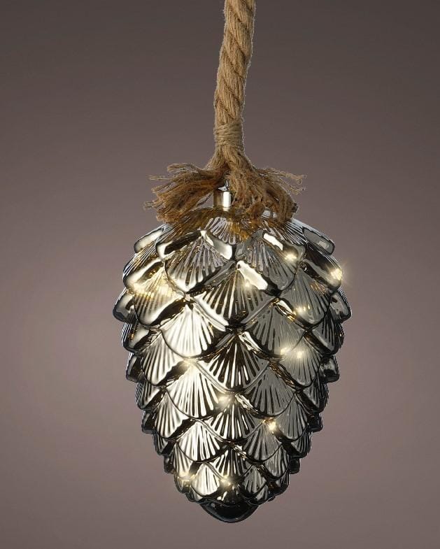 O denneboom, o denneboom, wat schijnt je dennenappel wonderschoon! Deze grijze hanglamp is een echte eyecatcher voor in de kerstboom, of om op te hangen bij de eettafel. Natuurlijk hoef je niet tot kerst te wachten om deze sfeervolle lamp op batterijen in huis te halen, de lamp schittert namelijk prachtig op een regenachtige herfstdag. De hanglamp is ook verkrijgbaar in de kleur warm wit.