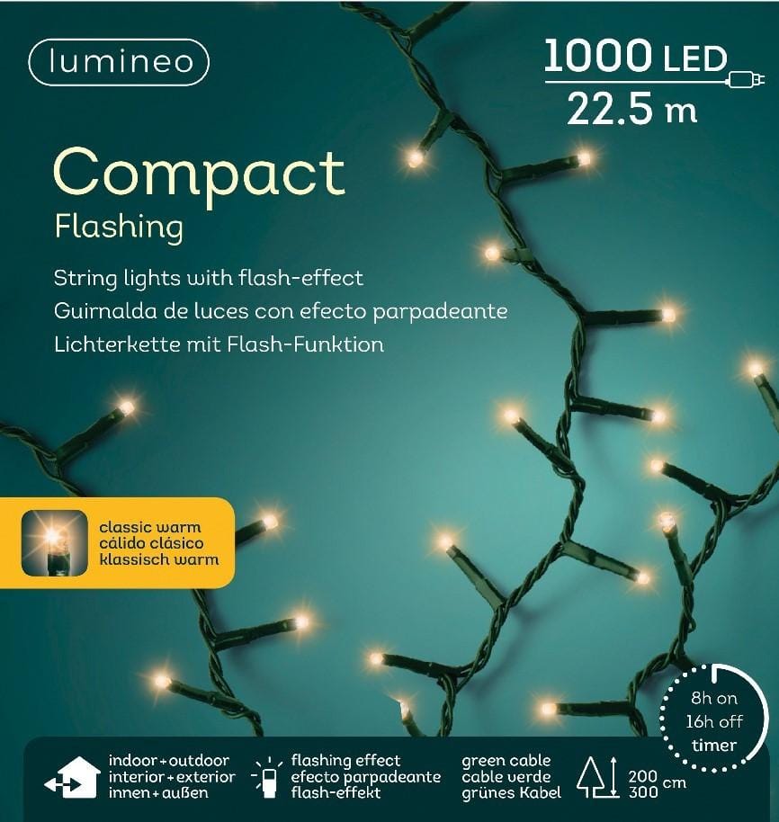 Kerstboomlampjes 22,5 Meter 1000 Led Klassiek Warm Flashing