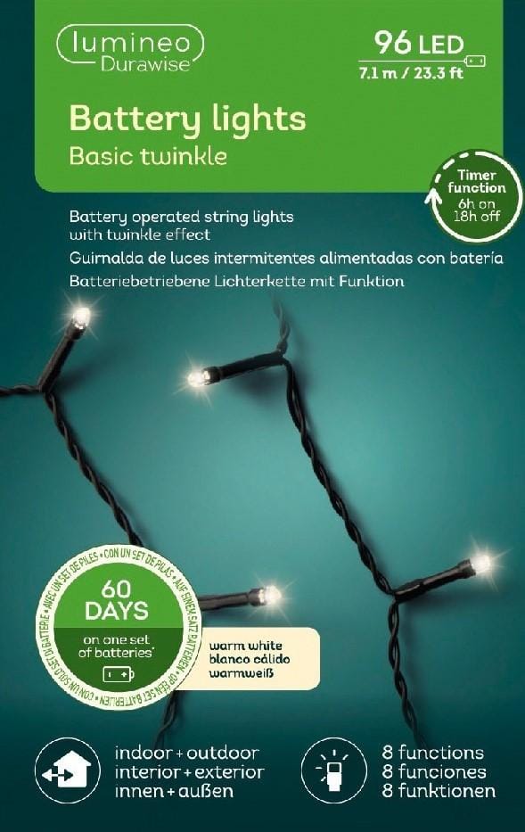 Kerstboomlampjes op Batterijen 7,1 Meter 96 Led Twinkle Effect Warm Wit