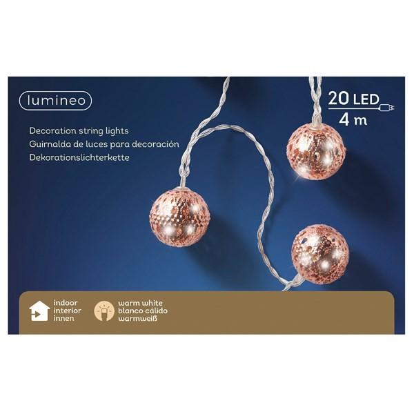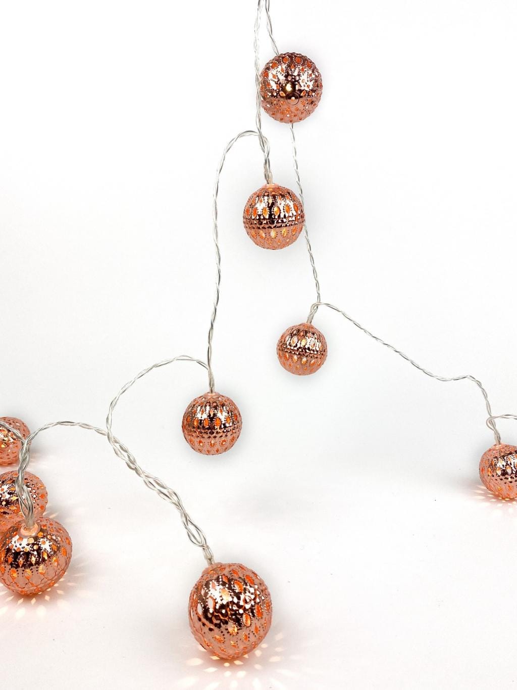 Prachtige verlichting om het thuis nog gezelliger te maken. Een mooi Led snoer met 20 koperen ballen waar het licht doorheen kan schijnen. Het snoer is bijna 4 meter lang en heeft 20 lampjes aan het snoer zitten.