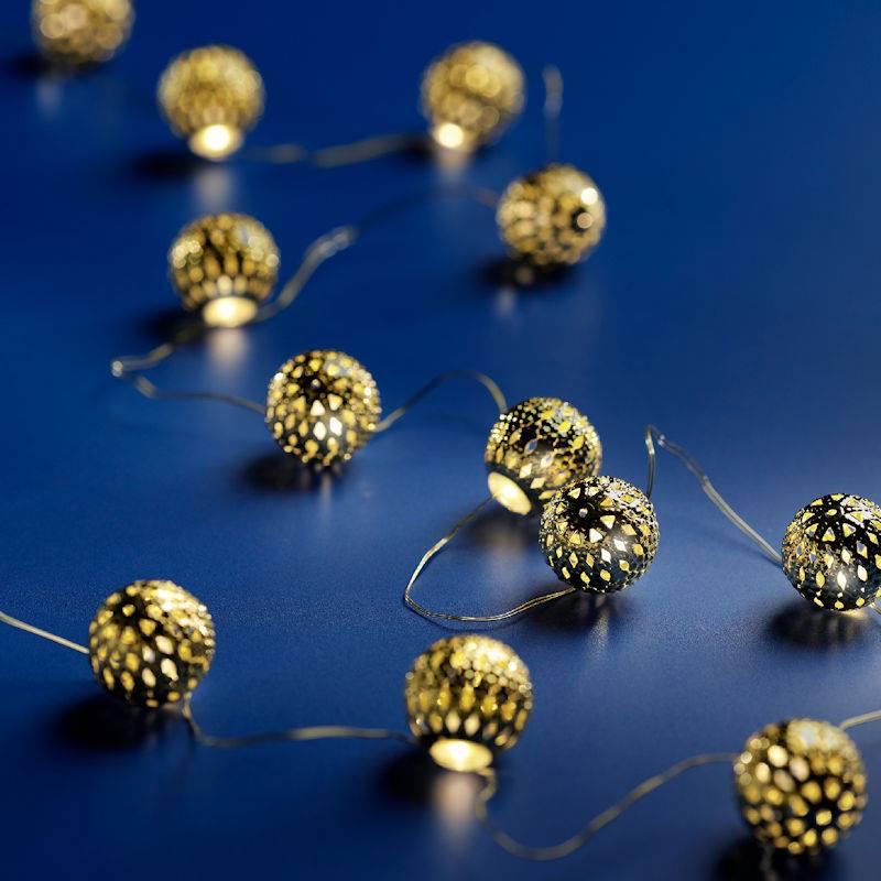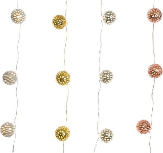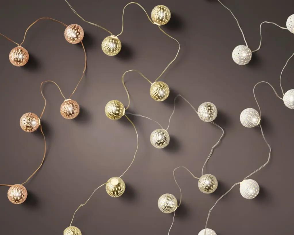De geperforeerde zilveren metalen bollen zorgen voor een subtiel sprankelend lichteffect. Dankzij de warm witte LED’s en het fijne draad past deze slinger in elk interieur, van modern tot klassiek. Ideaal voor feestdagen, slaapkamers, decoratie op een plankje of als finishing touch bij je tafelstyling.