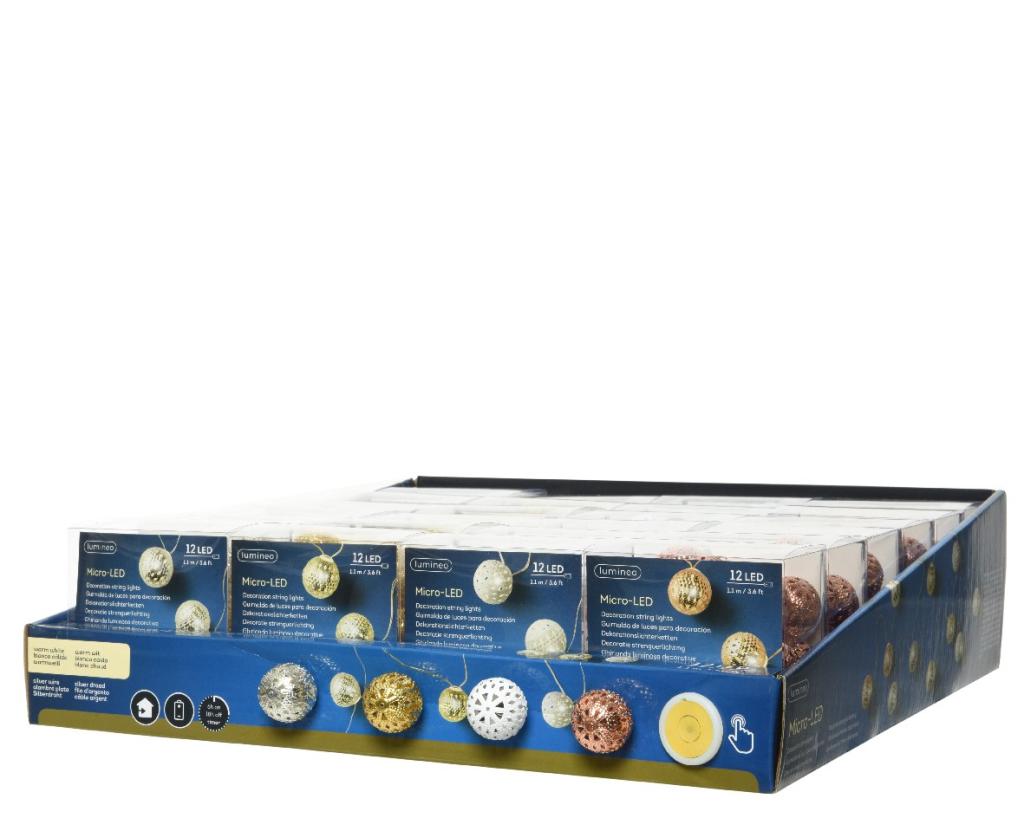 Micro Led Deco bal String – Zilveren metalen bollen (110 cm, 12 LED, warm wit)