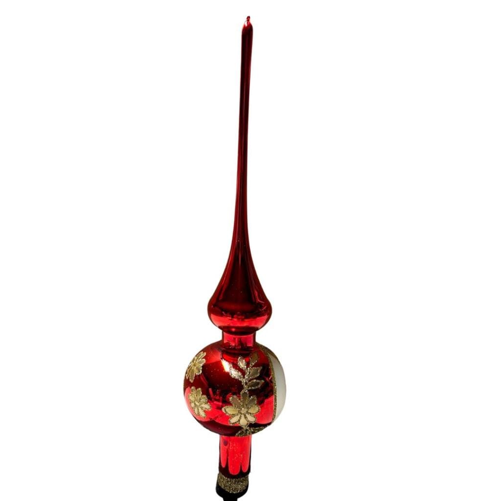 Reis terug in de tijd met deze nostalgische piek in een opvallend rood. Het contrast tussen het glanzende zilver aan de binnenkant en de gouden bloemen maakt deze piek tot een echte eyecatcher. Een vleugje retro charme voor elke kerstboom!
