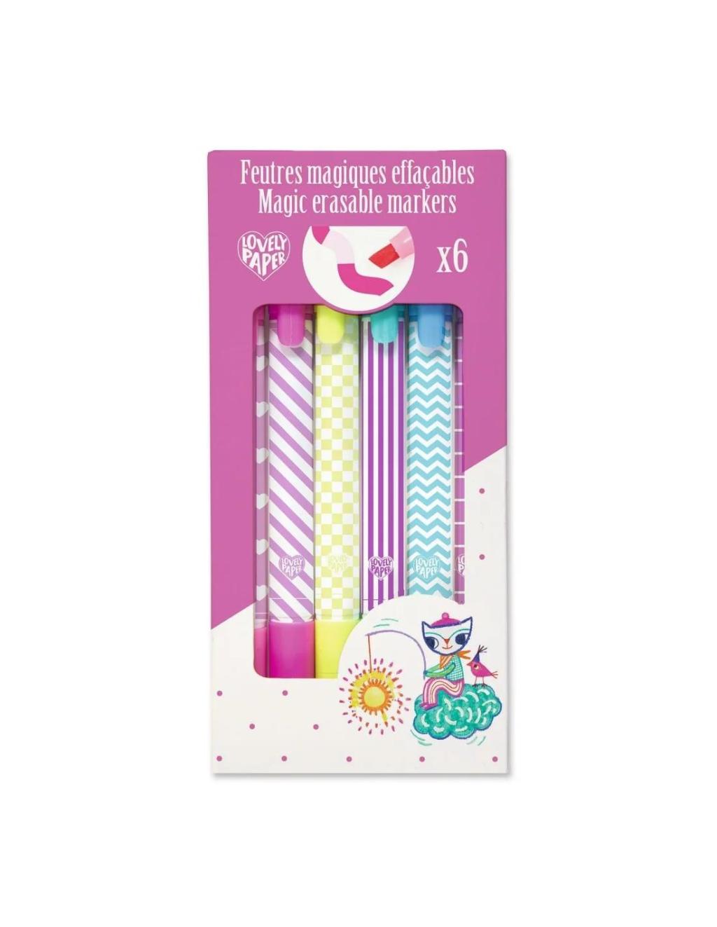 Magische viltstiften – Set van 6 uitwisbare markers met dubbele punt – Djeco