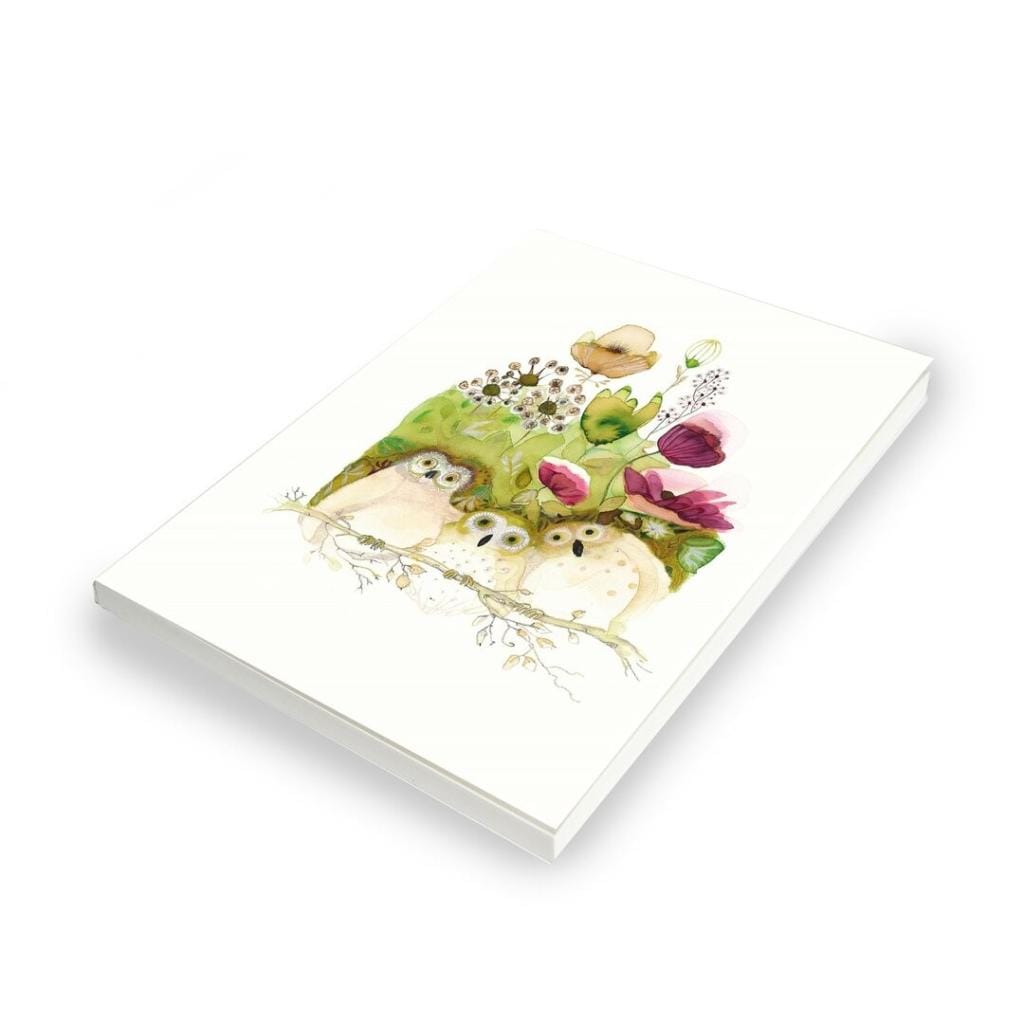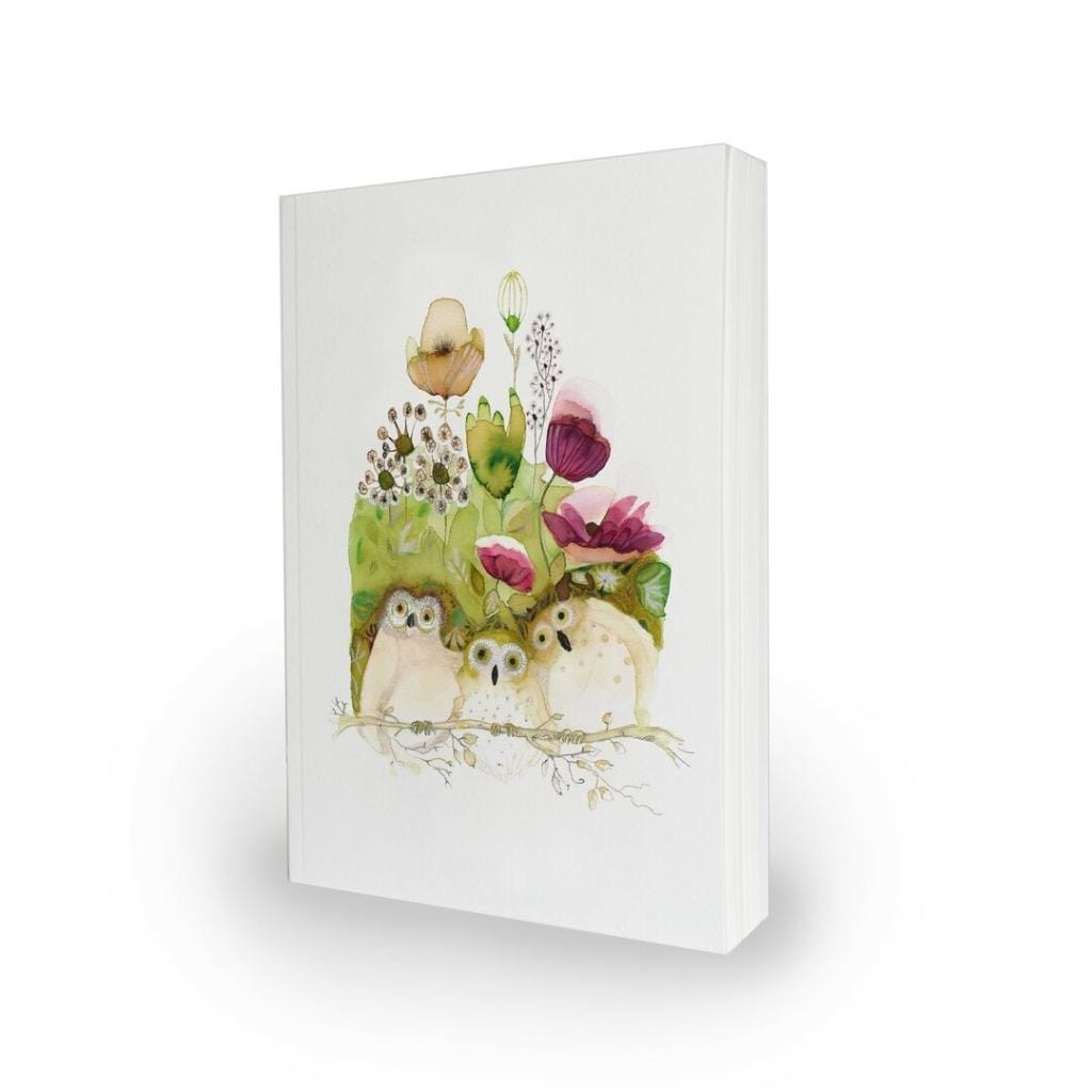 Een mooi notitieboekje met de succesvolle afbeelding ‘Three Owls' uit onze kaartencollectie op prachtig stevig Tinterettopapier.