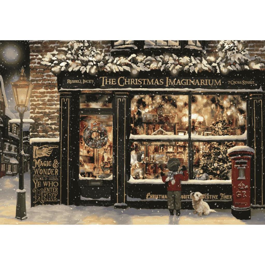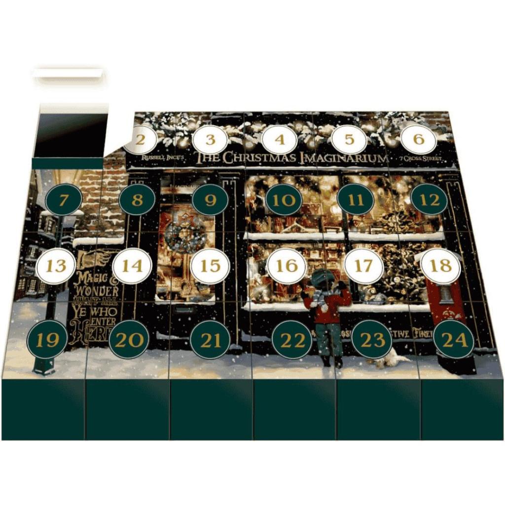 Welkom bij The Christmas Imaginarium – waar kerstmagie tot leven komt! Deze prachtige Puzzle Adventskalender van Coppenrath / Spiegelburg laat je elke dag een stukje van het betoverende tafereel ontdekken. Achter elk van de 24 doosjes schuilen ongeveer 42 puzzelstukjes die samen een warme, nostalgische kerstsfeer vormen. De complete puzzel bestaat uit 1000 stukjes en meet 73 × 51 cm. Het tafereel toont een sprookjesachtige winkel vol lichtjes, kerstdecoraties en verwondering. Buiten kijkt een kind met grote ogen naar binnen, terwijl sneeuwvlokken zachtjes neerdalen — een ode aan de magie van kerst.