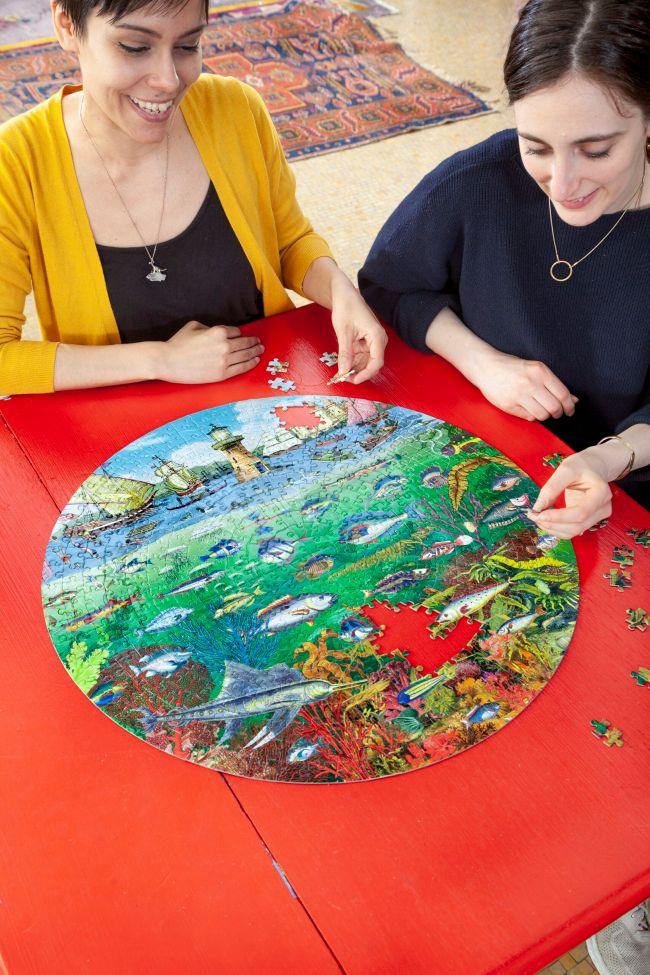 Ronde Puzzel Fish and Boat – 500 Stukjes – Ø 28 cm – eeBoo