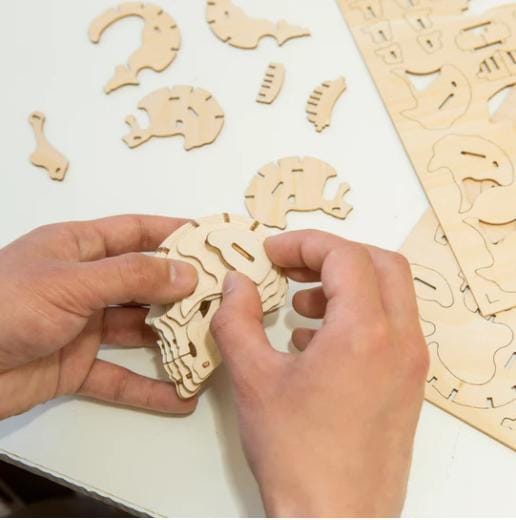 - Door het in elkaar zetten van laser gesneden houten onderdelen ontstaat een 3D object.