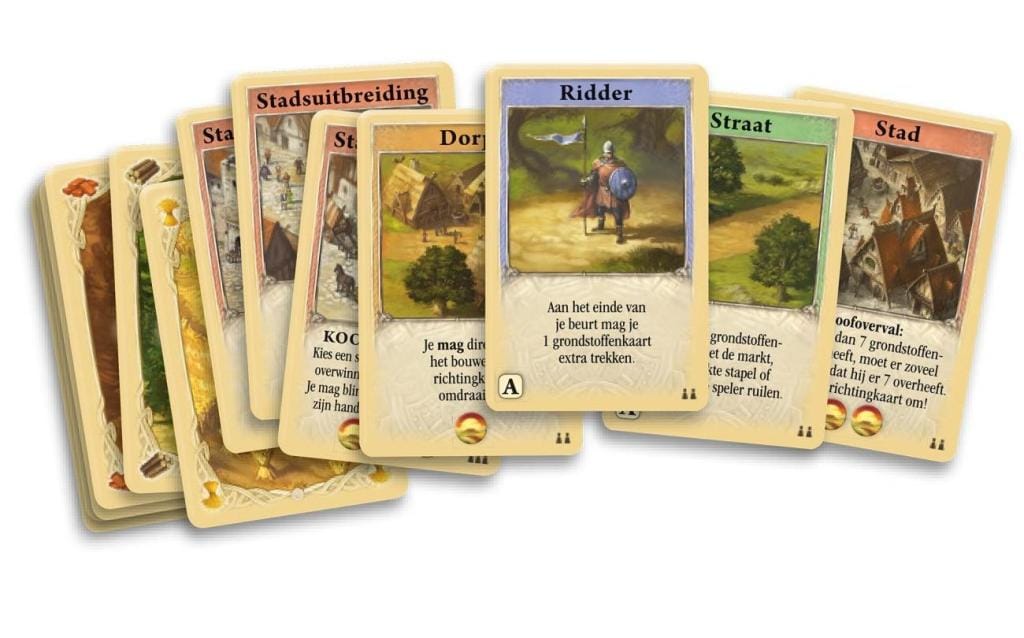 Vlot kaartspel voor 2-4 spelers, gebaseerd op het populaire bordspel Catan. Ook in dit kaartspel bouwen de spelers straten, dorpen en steden en zetten ze ridders in. Steden kunnen op verschillende manieren uitgebreid worden. Verder kunnen de spelers met elkaar of met de markt en de gedekte stapel grondstoffen ruilen.