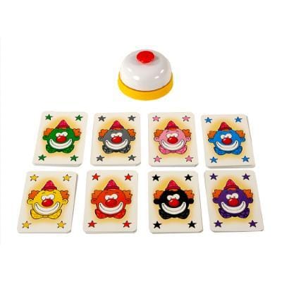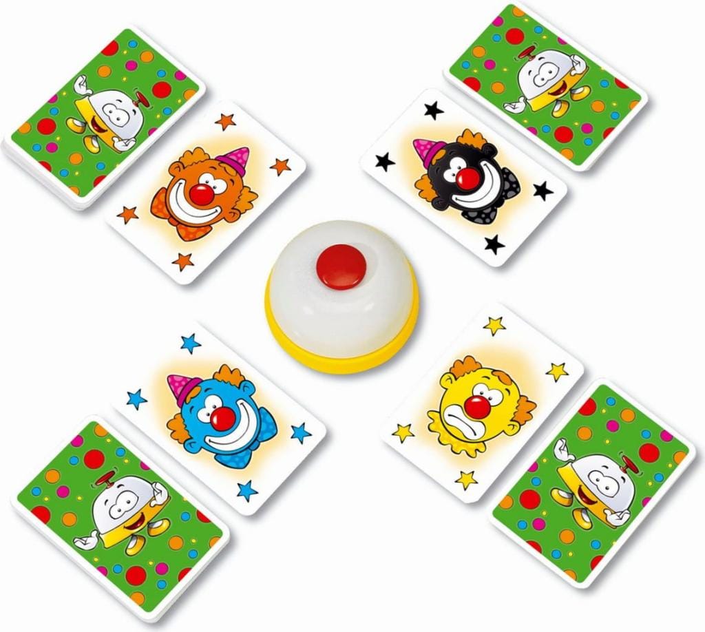 - Spelverloop: Iedere speler krijgt een gedekte stapel kaarten. Op elke kaart staat een vrolijke of een verdrietige clown. Om beurten draait iedere speler een kaart om en legt deze op zijn eventueel eerder omgedraaide kaarten. Zo is voor iedere speler altijd maar één kaart zichtbaar. Als van een bepaalde clown precies 2 lachende exemplaren zichtbaar zijn, proberen alle spelers zo snel mogelijk op de bel te drukken. Maar als er een verdrietige clown op tafel ligt, moet je juist niet op de bel drukken! Wie als eerste correct op de bel drukt, krijgt alle open kaarten. Wie geen kaarten meer heeft, is uitgeschakeld. Wie blijft als laatste over?