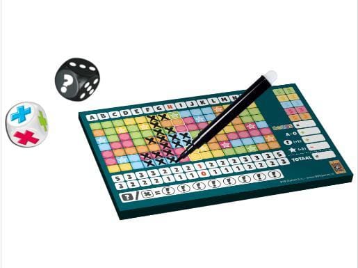 Dobbel- en puzzelspel voor het hele gezin. Kies steeds 2 dobbelstenen en kruis de bijbehorende vakjes op je speelveld aan. Het vullen van kolommen en gebieden van dezelfde kleur leveren een bonus op. Wie behaalt de meeste punten?
