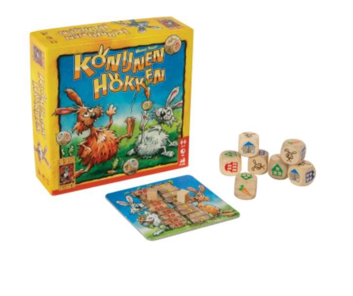 Konijnen Hokken past uitstekend in onze serie dobbelspellen en is ideaal voor op vakantie. Er kunnen maar liefst 7 spelers meedoen!