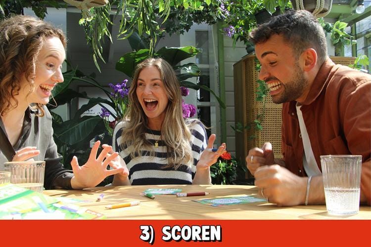 • Inhoud: 5 potloden, 1 scoreblok met 3 niveaus en de spelregels