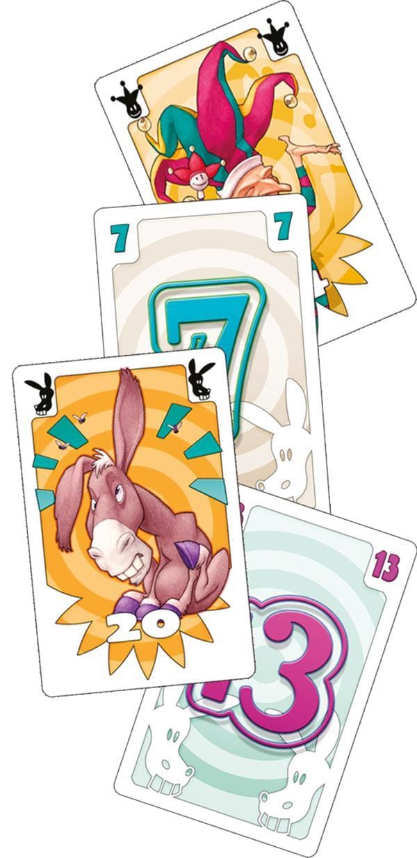 Hilarisch familiespel waarbij je heerlijk kunt lachen. Probeer zo snel mogelijk je kaarten kwijt te raken. De andere spelers krijgen strafpunten voor hun overgebleven kaarten. Pas op voor de ezel, die geeft extra strafpunten.