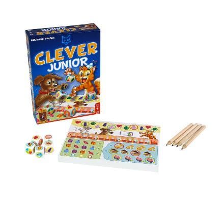 Clever Junior is de kindvriendelijke variant van het populaire roll & write-spel Clever. In deze vrolijke editie met feestthema verwerken kinderen dobbelsteenworpen op hun eigen scoreblad.