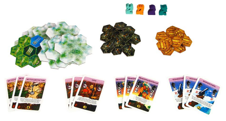 Met De Zoektocht naar El Dorado: Draken, Schatten & Mysteries voeg je drie nieuwe modules toe aan het populaire bordspel. Deze uitbreiding zorgt voor extra spanning, onverwachte wendingen en nóg meer tactische keuzes tijdens jullie zoektocht naar de Stad van Goud. De module Draken brengt gevaar op het speelveld. Draken vertragen speelstukken in hun omgeving en kunnen je zorgvuldig geplande route flink in de war sturen. De module Schatten introduceert schatfiches waarmee je kaarten uit je deck kunt verwijderen, extra stappen kunt zetten of zelfs direct de overwinning kunt grijpen. De module Mysteries zorgt voor gedekte terreintegels, waardoor je niet precies weet wat je te wachten staat. Vooruit plannen wordt lastiger en elke stap voelt spannender. De modules kunnen afzonderlijk worden gespeeld of gecombineerd met elkaar en met eerdere uitbreidingen. Dat maakt deze uitbreiding ideaal voor spelers die het basisspel al goed kennen en meer variatie zoeken. Let op: dit is een uitbreiding. Het basisspel De Zoektocht naar El Dorado is vereist om te kunnen spelen.