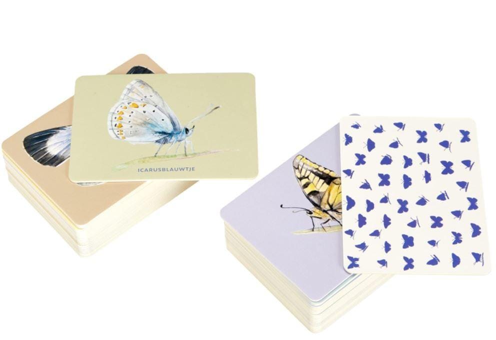 Leer onze mooiste dagvlinders kennen met dit nieuwe memorie spel. Veel vlinders hebben in de vlucht kleurrijke vleugels, maar zien er heel anders uit als ze zitten. Zoek de kaarten met de open- en dichtgevouwen vleugels van 25 vlinders bij elkaar en leer in het bijgesloten gidsje meer over de soorten.
