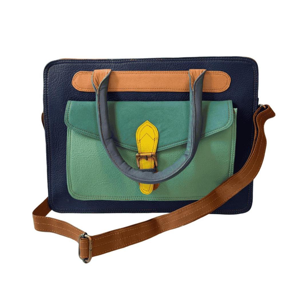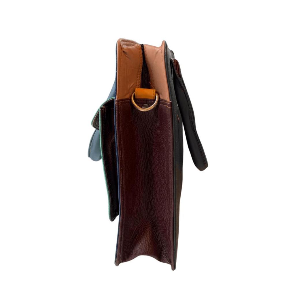 De Fairtrade werktas Damini 5 is een kleurrijke en praktische tas, ontworpen voor wie stijl en functionaliteit wil combineren. Deze tas is handgemaakt van restleer, voornamelijk buffelleer, waardoor elke uitvoering uniek is in kleur en uitstraling.