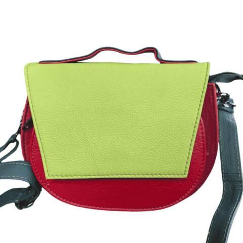 Fairtrade handtas Uma 3 – Kleurrijke leren schoudertas van restleer (25 cm)