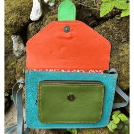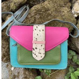Fairtrade Leren Handtas Lestari 1 – Kleurrijke Crossbody Tas met Omdraaibare Sluiting