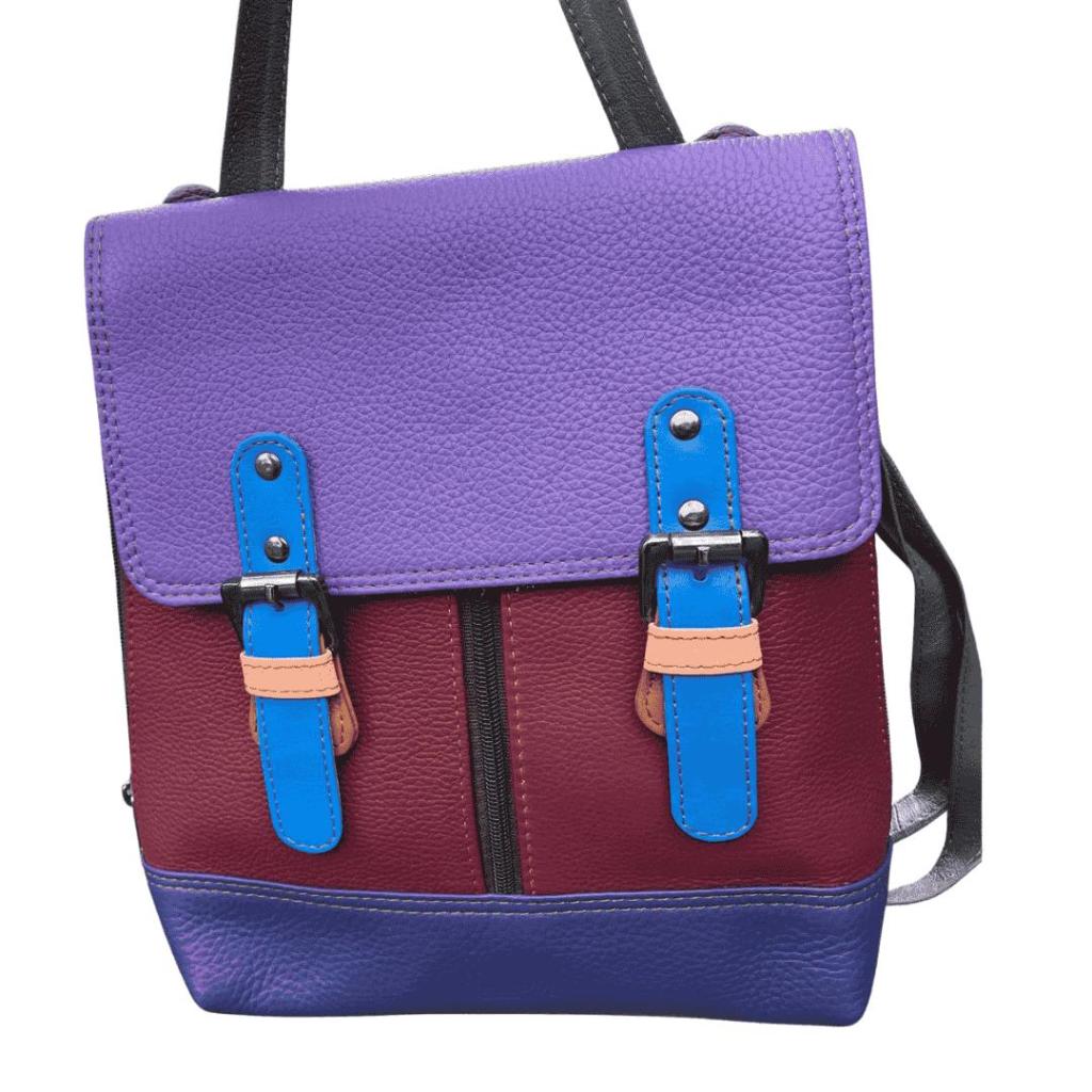 Leren Rugtas/Schoudertas Ananya 3 – – Kleurrijke fairtrade tas van restleer