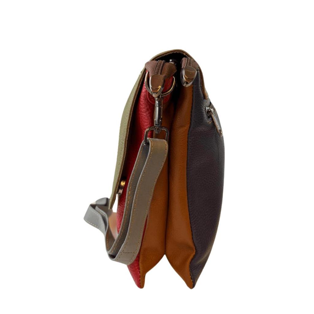 De Pallavi 1 van Siddarth is een compacte fairtrade schoudertas met een krachtige kleurencombinatie. Het warme rood wordt gecombineerd met olijfgroen en donkerblauw, wat deze tas een uitgesproken maar toch stijlvolle uitstraling geeft. De tas is handgemaakt van soepel leer en praktisch ingedeeld met meerdere ritsvakken. Aan de voorkant vind je twee diagonale ritsvakken voor spullen die je snel wilt pakken. Het hoofdvak sluit veilig met een rits en aan de achterkant zit nog een extra ritsvak voor bijvoorbeeld je telefoon of pasjes. Dankzij de verstelbare leren schouderband draag je de Pallavi 1 comfortabel crossbody. Compact van formaat, maar ruim genoeg voor je dagelijkse essentials. Een bewuste keuze: eerlijk geproduceerd en gemaakt om lang mee te gaan.