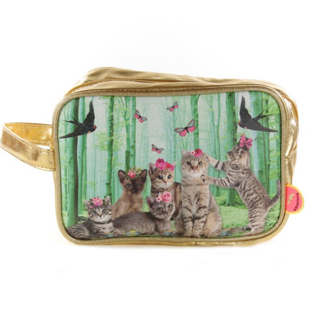 Deze vrolijke Toilettas Feestende Poesjes van Kunstboer brengt direct een glimlach op je gezicht! Het kleurrijke ontwerp met dansende en feestende katjes maakt je dagelijkse routine een stuk leuker. Gemaakt van stevig, glanzend kunstleer met een waterafstotende voering, ideaal voor al je verzorgingsproducten. De ruime ritsopening en stevige afwerking zorgen voor gebruiksgemak en duurzaamheid. Een perfecte accessoire voor kattenliefhebbers die houden van een speelse twist!