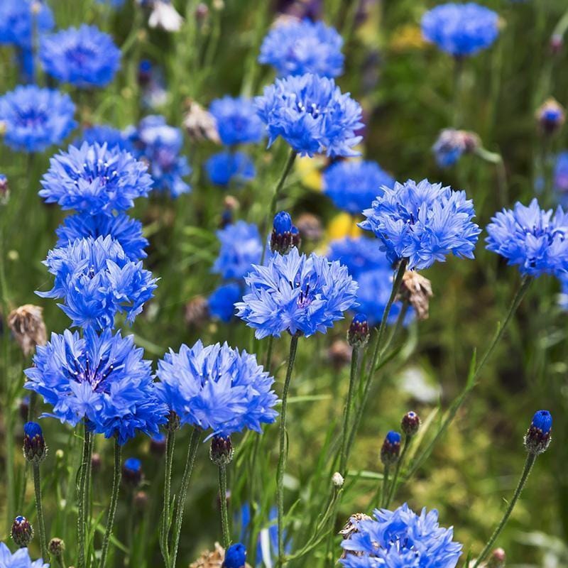 Korenbloem is een klassiek, eenjarig akkerkruid met helderblauwe bloemen en lange, slanke stelen. Deze bloem geeft een natuurlijke, veldachtige uitstraling aan borders en bloemenweides.