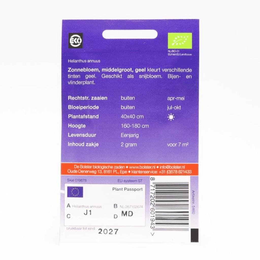 Zonnebloem Middel Geel (Helianthus annuus) – Biologische zaden (Eenjarig) De Bolster