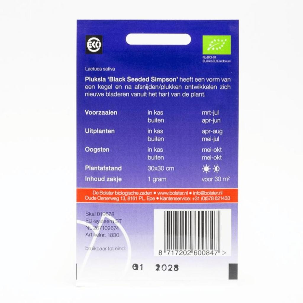 Groentezaad Pluksla Black Seeded Simpson (Lactuca sativa) – Biologische zaden (Eenjarig) De Bolster