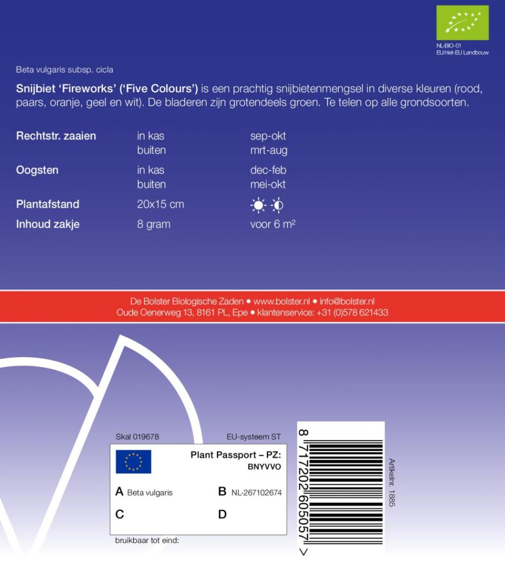 Snijbiet ‘Fireworks’ (‘Five Colours’) (Beta vulgaris subsp. cicla) – Biologische zaden De Bolster
