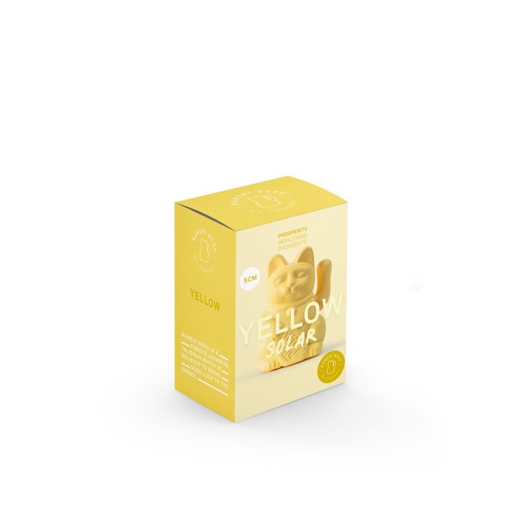 De Lucky Cat Solar in geel is een mini-versie van de beroemde Japanse Maneki Neko, speciaal ontworpen voor verzamelaars. Dankzij het zonnepaneeltje op de rug zwaait dit katje vrolijk zonder dat er batterijen nodig zijn. Met zijn compacte formaat van 5 cm is hij ideaal om te verzamelen, cadeau te doen of om een beetje geluk in huis te halen.