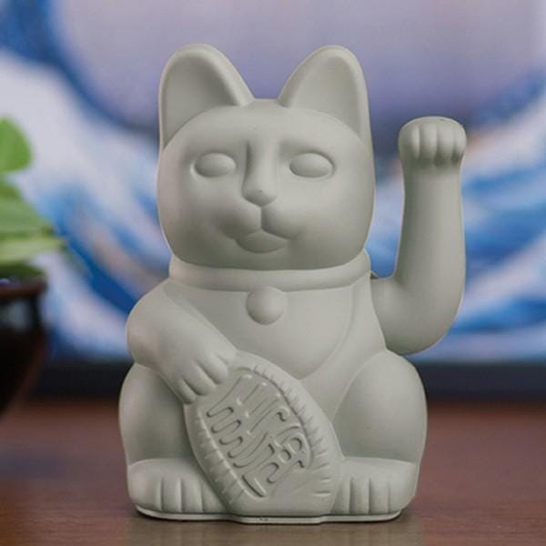 Maneki Neko is een beroemde Japanse talisman waarvan geloofd wordt dat hij de eigenaar geluk brengt. Lucky Cat zwaait met zijn arm. Grijs staat voor stabiliteit en veiligheid. Aan wie geef jij hem kado? Verkrijgbaar in 10 kleuren.