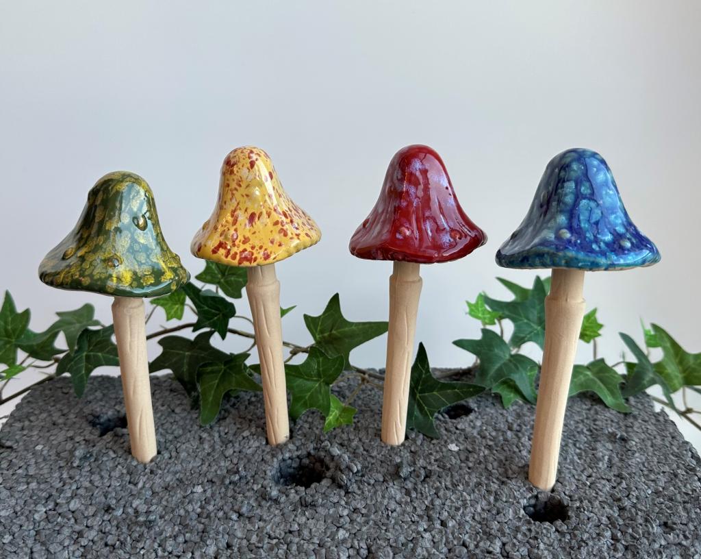 Elke paddenstoel is met de hand gemaakt, waardoor kleine verschillen in vorm en glazuur juist bijdragen aan de charme.