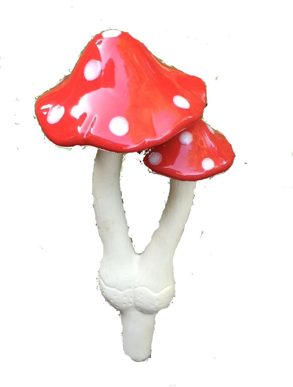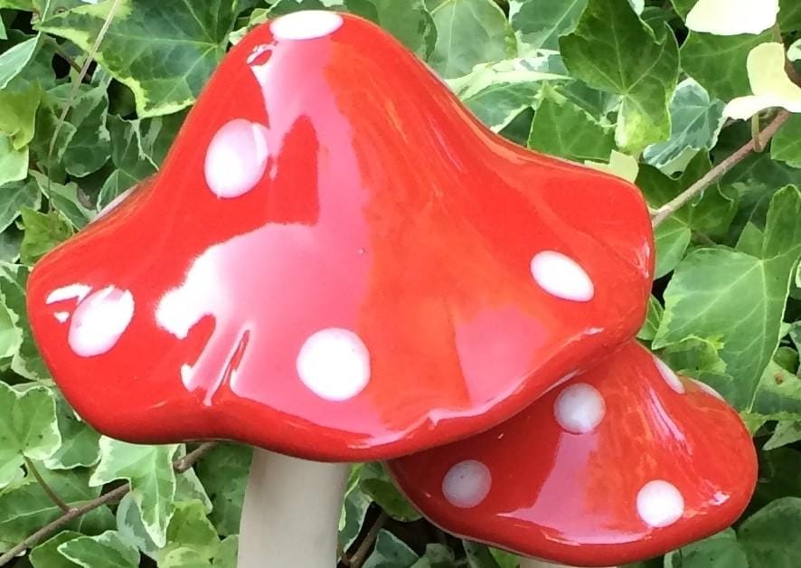 Breng een stukje natuur naar binnen met deze set van twee keramische paddenstoelen. De realistische vormgeving en de natuurlijke kleuren zorgen voor een rustgevende sfeer. Of je ze nu combineert met andere planten of als solitair object gebruikt, deze paddenstoelen zijn een echte blikvanger.