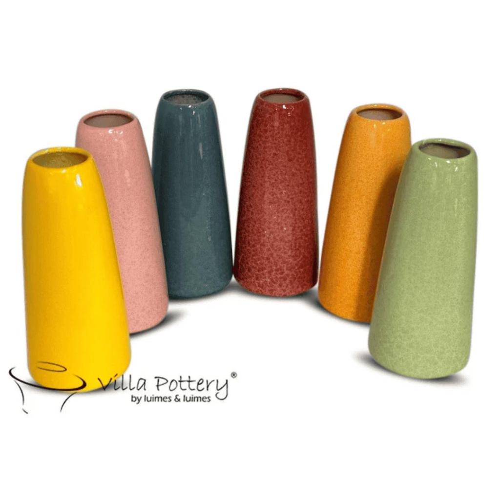 Vaas Pippa 3_2 Blauw van Villa Pottery is een verfijnde keramieken vaas in een diepe blauwtoon met een glanzende craquelé afwerking. Het elegante, slanke model en de rijke kleur maken deze vaas tot een subtiele blikvanger – perfect voor een enkele bloem, droogbloemen of gewoon als stijlvol object in je interieur. Dankzij het compacte formaat (20,2 cm hoog) past de vaas makkelijk op een vensterbank, plank of bijzettafel. Combineer haar met andere kleuren uit de Pippa-serie voor een levendig geheel met karakter.