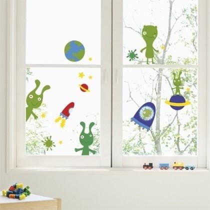 Leuk die Marsmannetjs voor op het raam van de kinderkamer. De vrolijk kijkende Aliens geven de kamer in een oogwenk een buitenaardse sfeer. Met andere accessoires, zoals de Muursticker Kids Alien en de Spaarpot Raket zou je deze sfeer nog verder kunnen doorvoeren. Kan ook gecombineerd worden met de Raamsticker Raket.