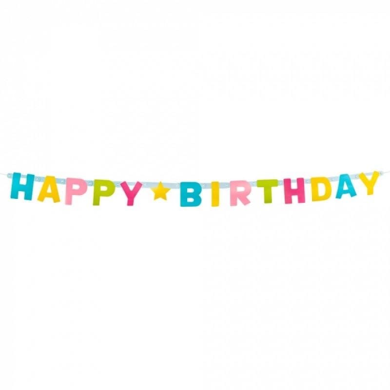 Deze slinger is er speciaal voor de jarige; Happy Birthday! Een mooie slinger van kartonnen gekleurde letters zodat iedereen kan zien dat er iemand jarig is!