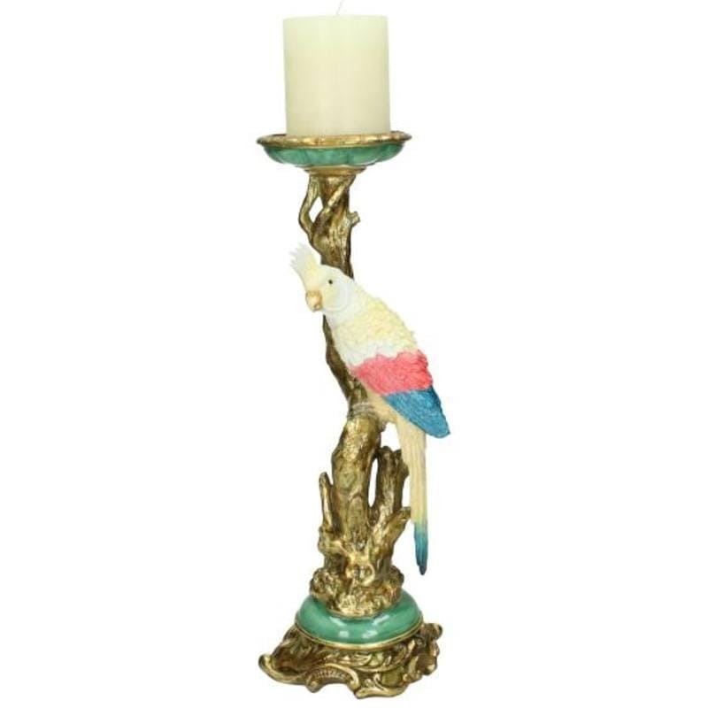 Deze fraai gedecoreerde Kaketoe kandelaar van KerstenBV is van kwaliteit Polyresin. De koperkleurige tak is vervaardig van metaal en bevat ook toffe details. Deze kandelaar is een ware eye-catcher en is geschikt voor stompkaarsen.
