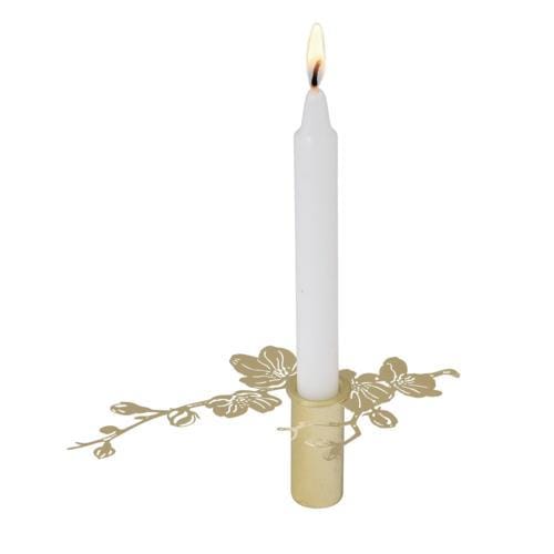 Deze kandelaar Kersenbloesem van Pluto is prachtig om te zien. Klein en subtiel, zoals zo veel van hun producten. Alleen weggelegd voor liefhebbers die dit kunnen waarderen. Het blokje metaal waar het kaarsje in komt te staan is verzwaard, zodat het goed rechtop blijft. De prachtig gouden dennentak kan je naar eigen inzicht nog enigszins buigen.